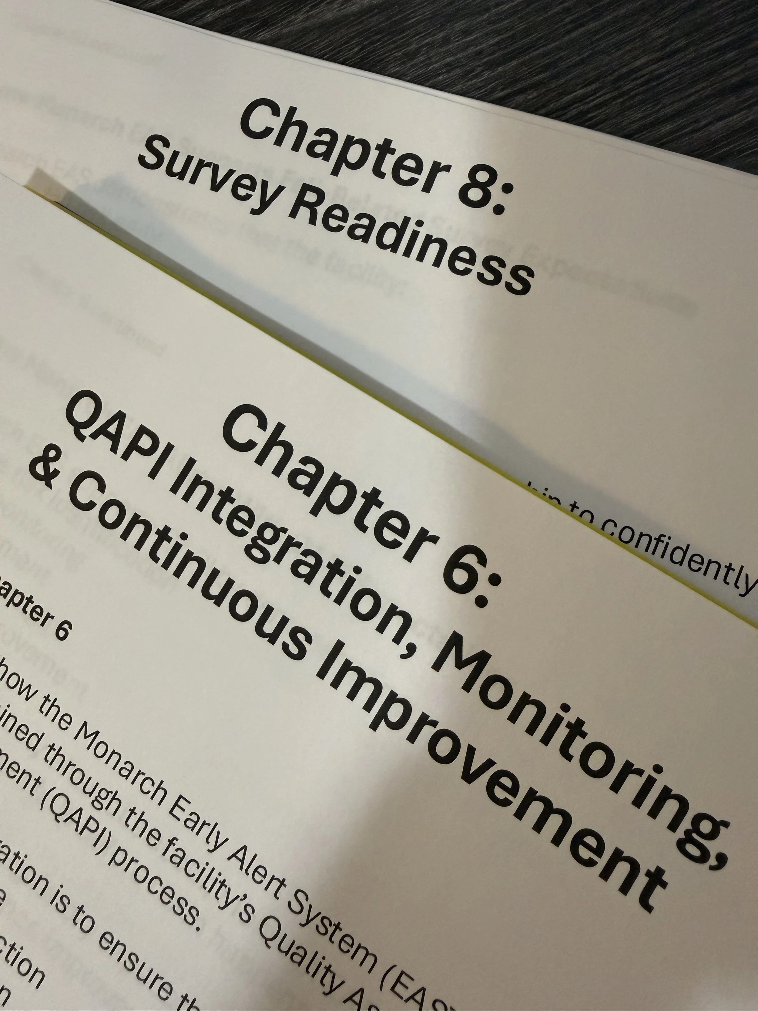 Clear, practical guidance to help facilities embed Monarch EAS™ into daily practice—supporting long-term use, leadership oversight, and survey readiness.
